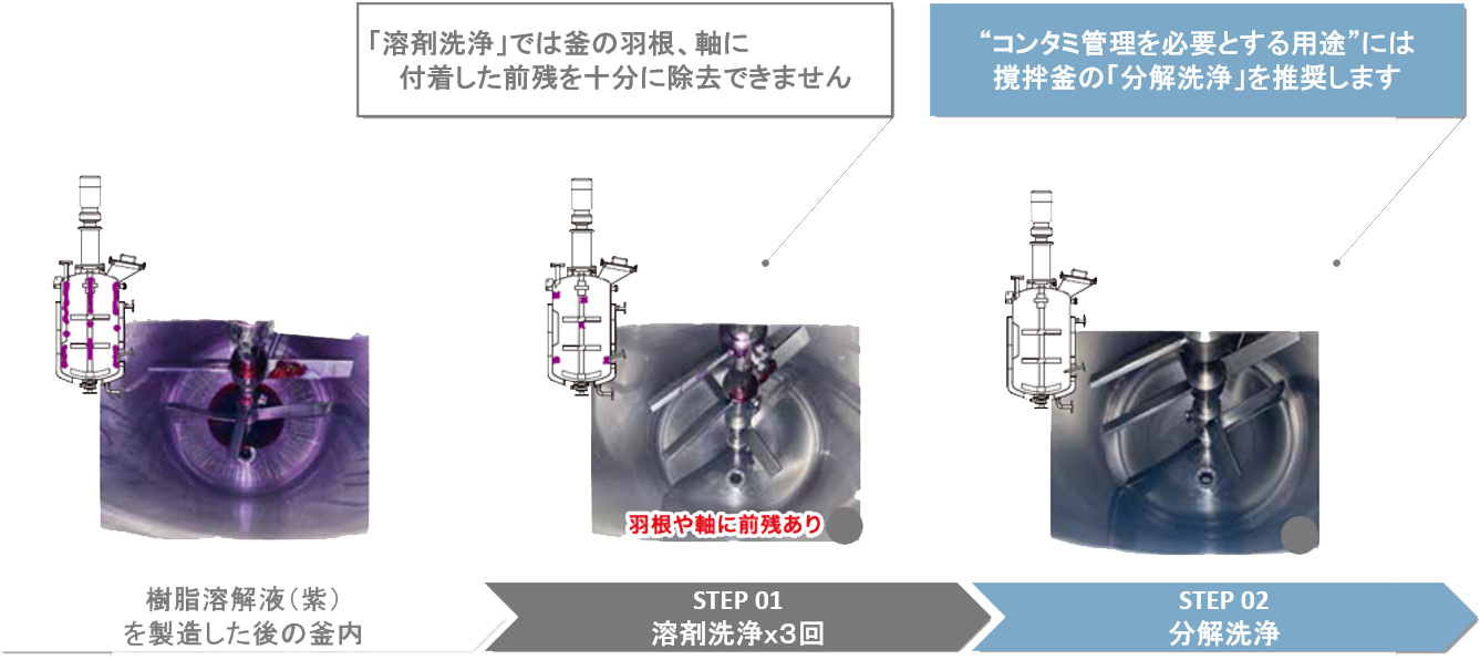 品替え毎に撹拌釜を「分解洗浄」することで、
